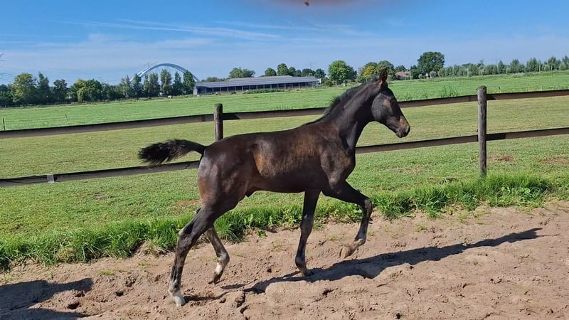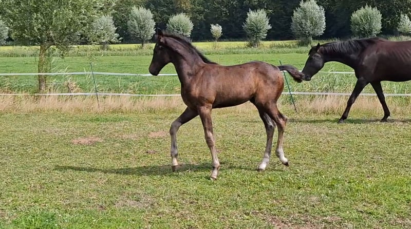 En venta: Potro (22/5) de Denver U.S x Just Wimphof. Potro muy cariñoso y orientado hacia las personas, con buena talla y buenos movimientos. El potro se mueve hacia arriba con mucha postura y una bonita técnica de piernas. De esta línea materna provienen varios buenos caballos de deporte, así como el G.G.H United. El potro está correctamente construido y completamente sano. Recientemente, el potro ha recibido el título D-OC.