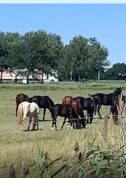 KWPN Dressuur Jaarlinghengst: knappe ✨ Urban Dance is zwart met een mooie aftekening: 4 witte voeten en een kol. Urban is 17-06-2024 geboren. Hij was voor ons het tweede veulen van Total mcLaren uit onze ⭐️Charmeur x Ferro merrie. 1.62 m Moeder in het verleden alleen via thuiskeuring opgenomen in het stamboek. Mooie, krachtige merrie. Moeders moeder is de moeder van goedgekeurde hengst KENNEDY v.Ferro. •Vraagprijs 3000€ ✨Tijuana 1 jaar oudere zus is ook bij ons te bezichtigen. Het is een schoonheid een mooi ontwikkelde, chique, hoogbenige zwarte merrie met dezelfde aftekening. Ze heeft het Do-C predicaat. Het zijn lieve en zachtaardige dieren die makkelijk te hanteren zijn en een vertrouwd gevoel geven. Allen krachtig bewegen een mooi vrij voorbeen gebruik. De fenomenale hengst Total McLaren is de uitzonderlijke 8-jarige zoon van de legendarische Totilas, gecombineerd met de topgenen van De Niro en Sandro Hit. Zijn indrukwekkende prestaties in de sport en zijn uitmuntende verervingskwaliteit. * Brons bij het Bundeschampionat 2022 5-jarige Dressuurpaarden. * Oldenburger Hauptprämien: Bekroond voor de uitzonderlijke kwaliteit van zijn veulens. Total McLaren was de ware ontdekking van de KWPN-hengstenkeuring 2020 in Den Bosch, waar deze uiterst beeldschone en fantastisch hoogbenige zwarte met zijn elegante uitstraling en zijn drie bovenal hoogwaardige basisgangen alle ogen op zich wist te richten. Andreas Helgstrand wilde hem ook onbedingt kopen en Total McLaren verhuisde naar Denemarken. Hier werd hij ook goedgekeurd voor het Dansk Verband en voltooide hier zijn Verrichtingstest met de verwachte hoogtepunten in de basisgangen en Rittigkeit en een totaalscore van 807,0 punten. Onder Jana Schrödter verzekerde hij zich van Brons tijdens de Deense Dressuurkampioenschappen met een droomscore van een 10.0 voor zijn galop. In 2022 veroverde hij wederom Brons met Leonie Richter in het zadel; echter deze keer tijdens het Bundeschampionat voor vijfjarigen in Warendorf (8.8). Total mcLaren: is in dit jaar in een samenwerking van Hengstenstation v.Uytert / Stal Brouwer en Helgstrand verhuisd naar Nederland 🇳🇱 🏡 Onze paarden bezoeken kan bij ons aan huis in Rockanje. Filmpjes op aanvraag. Veulen en jaarling hengsten mogen bij een goed gevoel voor een lagere prijsklasse verkocht worden. Wel z.s.m. Hengsten kunnen in de opfok Zeeland. 💎De 2,5 jarige zwarte merrie mag alleen verhuizen tegen een goed bod naar waarde. Bezuijen- Overheid Kwpn lidnummer: 16933 +31611225027