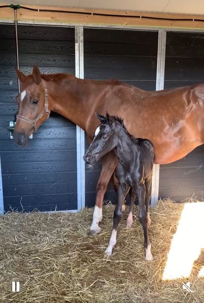 KWPN Dressage Yearling Stallion: handsome ✨ Urban Dance is black/brown with a beautiful marking: 4 white feet and a blaze. Urban was born on 17-06-2024. He was our second foal from Total McLaren out of our ⭐️ Charmeur x Ferro mare. 1.62 m. The mother was only registered in the studbook through home inspection in the past. A beautiful, powerful mare. The mother’s mother is the dam of the approved stallion KENNEDY by Ferro. • Asking price €3000 ✨ Tijuana, a 1-year older sister, is also available for viewing. She is a beauty, a well-developed, chic, tall black mare with the same markings. She has the Do-C predicate. They are sweet and gentle animals that are easy to handle and provide a sense of trust. All move powerfully with a nice free use of the foreleg. The phenomenal stallion Total McLaren is the exceptional 8-year-old son of the legendary Totilas, combined with the top genes of De Niro and Sandro Hit. His impressive performances in sport and his outstanding breeding quality. * Bronze at the Bundeschampionat 2022 for 5-year-old dressage horses. * Oldenburg Hauptprämien: Awarded for the exceptional quality of his foals. Total McLaren was the true discovery of the KWPN stallion inspection 2020 in Den Bosch, where this extremely beautiful and fantastically tall black stallion, with his elegant appearance and his three high-quality basic gaits, drew all eyes to him. Andreas Helgstrand also wanted to buy him, and Total McLaren moved to Denmark. Here he was also approved for the Dansk Verband and completed his performance test with expected highlights in the basic gaits and rideability, achieving a total score of 807.0 points. Under Jana Schrödter, he secured Bronze at the Danish Dressage Championships with a dream score of 10.0 for his canter. In 2022, he again won Bronze with Leonie Richter in the saddle; however, this time at the Bundeschampionat for five-year-olds in Warendorf (8.8). Total McLaren: this year moved to the Netherlands 🇳🇱 in collaboration with Hengstenstation v.Uytert / Stal Brouwer and Helgstrand. 🏡 You can visit our horses at our home in Rockanje. Videos available upon request. Foals and yearling stallions may be sold at a lower price range if there is a good feeling. Stallions can be raised in Zeeland. 💎 The 2.5-year-old black mare may only move for a good offer based on her value. Bezuijen- Overheid KWPN membership number: 16933 +31611225027
