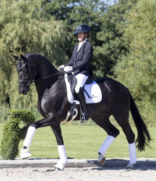 KWPN Dressage Yearling Stallion: handsome ✨ Urban Dance is black with a beautiful markings: 4 white socks and a blaze. Urban was born on 17-06-2024. He is our second foal from Total McLaren out of our ⭐️Charmeur x Ferro mare. 1.62 m His mother was previously registered in the studbook only through a home inspection. A beautiful, powerful mare. The dam’s mother is the dam of the approved stallion KENNEDY v. Ferro. • Asking price: €3,000 ✨ Tijuana, a year older sister, is also available for viewing with us. She is a stunning, well-developed, elegant, tall black mare with the same markings. She holds the Do-C premium. These are gentle and kind animals that are easy to handle and give a feeling of trust. All move powerfully with a beautiful, free front leg action. The phenomenal stallion Total McLaren is the exceptional 8-year-old son of the legendary Totilas, combined with top genes from De Niro and Sandro Hit. His impressive achievements in sport and his outstanding hereditary qualities include: * Bronze at the Bundeschampionat 2022 for 5-year-old dressage horses. * Oldenburger Hauptprämien: awarded for the exceptional quality of his foals. Total McLaren was the true discovery of the KWPN stallion licensing in 2020 in Den Bosch, where this extremely handsome and remarkably tall black stallion, with his elegant appearance and three high-quality basic gaits, captured everyone's attention. Andreas Helgstrand also wanted to buy him unconditionally, and Total McLaren moved to Denmark. Here, he was also approved by the Dansk Verband and completed his performance test with the expected high scores in basic gaits and rideability, earning a total of 807.0 points. Under Jana Schrödter, he secured bronze at the Danish Dressage Championships with a dream score of 10.0 for his canter. In 2022, he again won bronze with Leonie Richter riding; this time at the Bundeschampionat for five-year-olds in Warendorf (8.8). Total McLaren: this year, in collaboration with Hengstenstation v. Uytert / Stal Brouwer and Helgstrand, he was relocated to the Netherlands 🇳🇱 🏡 Our horses can be visited at our home in Rockanje. Videos available upon request. Foals and yearling stallions can be sold at a lower price if there is a good feeling. Quick sale preferred. Stallions can be kept in foal in Zeeland. 💎 The 2.5-year-old black mare may only be sold for a fair offer reflecting her value. Bezuijen - Government KWPN membership number: 16933 +31 6 1122 5027