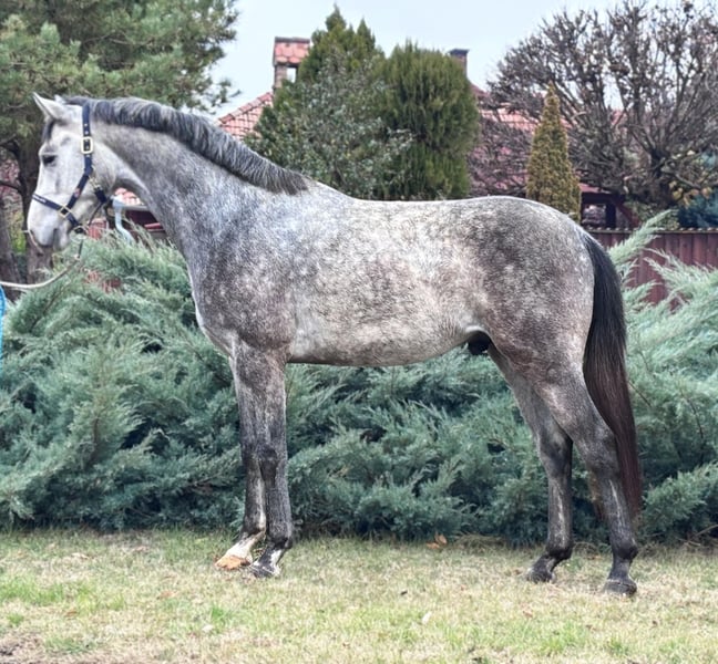 Przedstawiam obiecującego młodego konia sportowego – 2,5-letni ogier o wzroście 165 cm. Ojciec: #Grand #Slam #VDL x #Cardento x #Capitol I Matka: #Berlin x #Cassini I Ojciec: Grand Slam VDL, aktywnie startujący w konkursach 1,60 m Grand Prix. Matka: Berlin jest bezpośrednią córką legendarnego Cassini I. Jego pochodzenie mówi samo za siebie, ponieważ dziedziczy linię krwi światowej klasy koni skokowych. Koń ma nowoczesny, elegancki wygląd, bardzo dobre proporcje i poprawną budowę nóg. Jego ruch jest elastyczny, lekki i zrównoważony, w połączeniu z doskonałym skokiem. Pomimo młodego wieku, już pokazuje talent w skokach i zapowiada się na wielki potencjał na przyszłość. Spokojny, towarzyski, łatwy w nauce i współpracy – to idealny wybór dla ambitnych sportowców poszukujących niezawodnego, a zarazem wybitnego konia sportowego. +4917640177894