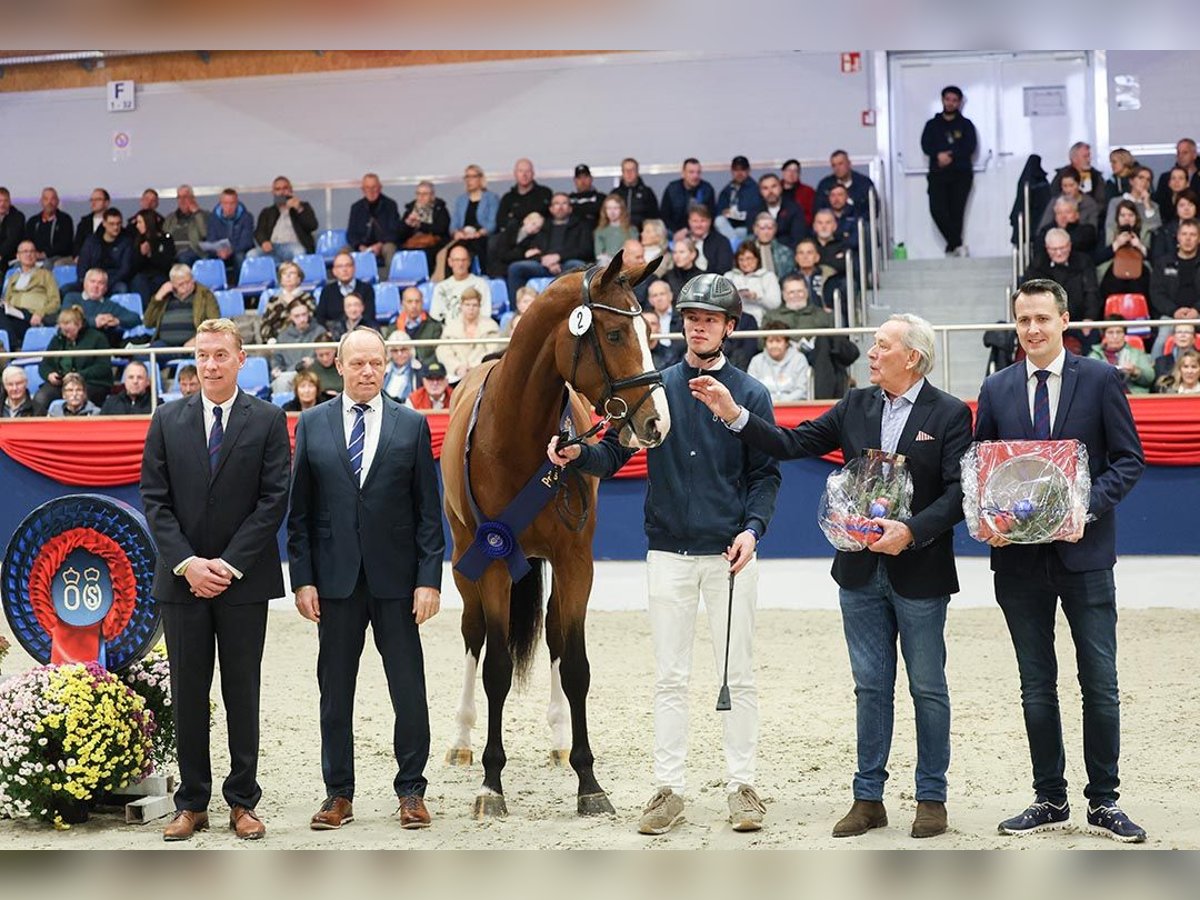 Mit großer Freude präsentieren wir Candy Cumano, einen außergewöhnlichen jungen Hengst aus der erfolgreichen Springlinie des Candy de Nantuel, der sich bei seiner Körung eindrucksvoll präsentierte und aufgrund seiner herausragenden Qualität direkt als Prämienhengst ausgezeichnet wurde. Bereits bei der Vorauswahl überzeugte Candy Cumano mit modernem, kraftvollem Exterieur und einer starken Präsenz. Am Sprung zeigte er eine beeindruckende Kombination aus Vermögen, Reflexen, Technik und Intelligenz. Besonders hervorzuheben sind sein energischer Absprung, die sehr gute Bascule und sein kraftvolles Hinterbein. Abstammung Der Vater Candy de Nantuel hat seine Eigenleistung im gehobenen Springsport eindrucksvoll unter Beweis gestellt. Unter dem Sattel von Pénélope Leprévost war er erfolgreich bis 1,55 m. Die Verbindung aus sportlicher Härte und dem begehrten Selle Français-Blut qualifiziert ihn klar als Spitzenvererber. Der Mutterstamm untermauert die hohe züchterische Qualität eindrucksvoll. Die erste Mutter Isolde ES ist unter anderem Mutter des gekörten und international bis 1,45 m erfolgreichen La Costa ES v. Mosito van het Hellehof, der unter Frank Schuttert in den Niederlanden erfolgreich im Sport steht. Candy Cumanos Halbschwester One and Only ES v. Kashmir van Schuttershof ist die Mutter des OS-Siegerhengstes 2025 Cashmere Blue, der seinen 50-Tage-Test mit einer gewichteten springbetonten Endnote von 8,85 als bester Hengst abschloss. Der Muttervater Cumano zählt zu den absoluten Ikonen des Springsports. Unter Jos Lansink gewann er 2006 den Weltmeistertitel bei den Weltreiterspielen in Aachen und nahm an den Olympischen Spielen in Athen und Hongkong teil. Auch züchterisch weist Cumano eine herausragende Bilanz auf: Über 20 gekörte Söhne sowie mehr als 50 international erfolgreiche Nachkommen bis 1,60 m sprechen für seine nachhaltige Vererberkraft. Auch die zweite Mutter Centerfold Z lieferte zahlreiche sportlich erfolgreiche Nachkommen, darunter Air Nike Z van de Helle v. Air Jordan Z (1,45 m), Gracia ES v. Last Man Standing (1,40 m) und James Bond ES v. Air Jordan Z (1,40 m). Mit Chellano Z steht in dritter Vatergeneration eine weitere Legende des internationalen Springsports. Ebenfalls unter Jos Lansink bis in schwerste Prüfungen erfolgreich, etablierte er sich früh als herausragender Vererber. Mit 35 gekörten Söhnen und nahezu 100 international erfolgreichen Nachkommen bis 1,60 m verleiht Chellano Z diesem Pedigree einen unbestreitbaren Leistungsstempel. In der dritten Generation der Mutterlinie steht Nulora S, die weitere international erfolgreiche Sportpferde hervorbrachte, darunter Dutch Blue v. Chacco-Blue (1,50 m) und Kyara Rock v. F-One USA (1,45 m). Ergänzt wird die Leistungsdichte des direkten Mutterstamms durch sportlich herausragende Pferde bis auf 1,60-m-Niveau, wie Cupcake Z v. Chacco-Blue (Sanne Thijssen) und USA Today v. Heartbreaker (Robert Whitaker). Diese außergewöhnliche Leistungsdichte über mehrere Generationen bildet eine fundierte Basis für die Weitergabe von Rittigkeit, Technik und Vermögen für den internationalen Springsport. weitere Informationen unter candycumano.sosath.com