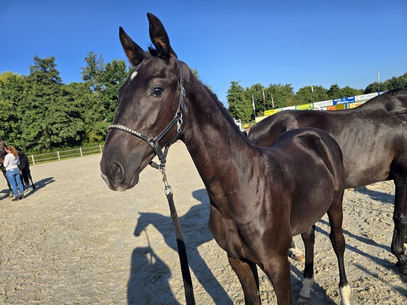 Fijn mensgericht hengstveulen van O'toto van de Wimphof x Florencio Elite,Sport Zzz, (D-oc)x Farrington. Loopt netjes mee aan het halster. Uit deze merrie komt ook een bij het Oldenburger stamboek goedgekeurde hengst, een halfbroer loopt Zzz