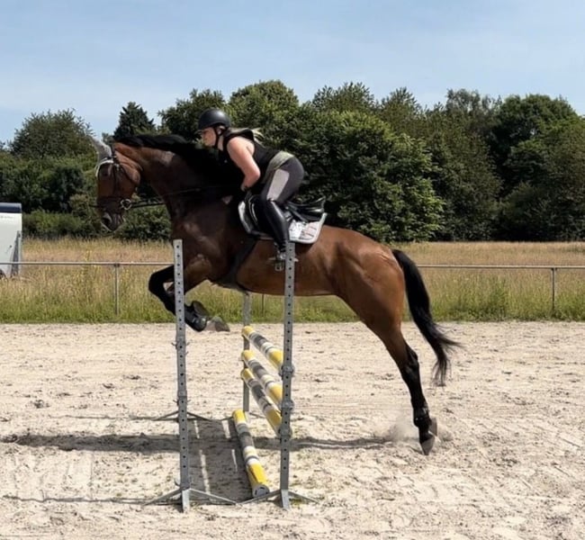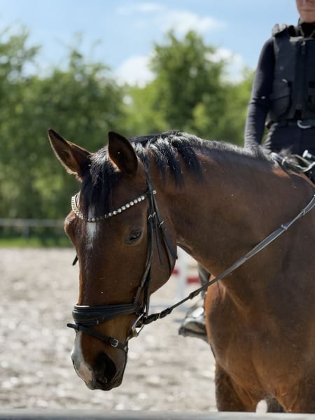 Emilia Clarke is a tall, beautiful KWPN mare with an excellent pedigree. Her sire, Everdale (successfully competing at Grand Prix level with Jessica von Bredow-Werndl internationally), and her dam's sire, Florencio I (twice World Champion of Young Dressage Horses), stand for quality. She is currently competing at novice level in dressage and is resuming winter training after a break. With consistent work and a dedicated team, she offers an honest, talented dressage horse with potential for more. In addition to dressage, Emilia has been occasionally introduced to jumping, up to approximately 1 meter. She is familiar with side reins, works willingly with them, and is pleasant to ride. She is not a natural jumper but benefits from a calm, clear rider. Under younger riders, such as my 15-year-old niece, she consistently shows herself to be well-behaved, motivated, and eager to perform. She is a friendly, affectionate, and motivated mare that enjoys working and brings joy in daily handling. In new situations, she appreciates a rider who can give her confidence—then she is reliable. Emilia has already gained competition experience and has placed in E-level show jumping (LPO and WBO). She has also been introduced to a few A-level show jumps (placed once in WBO), though she has not been further promoted in this discipline. In dressage, she has mostly been shown in dressage rider competitions, where she has always performed reliably—even at the start of the class, she remains steady and calm. This is a great horse for ambitious leisure riders, re-entrants, show jumpers, or a parent-child team who enjoy dressage and perhaps want to try a few jumps. During summer, Emilia spends 24 hours on pasture; in autumn and spring, she is in an open stable; and in winter, she is stabled with daily turnout on pasture or paddock. She is familiar with both loose-box and pasture keeping but prefers a dedicated area in the open stable where she can find her rest. This is not an urgent sale—she will only be placed in caring, loving hands where she can stay long-term and be loved just as much as with us. We simply do not have enough time for her, and her talent is being underused. Viewing and trial riding are possible by arrangement in 41515 Grevenbroich (a fee of €25, which will be deducted from the purchase price). Please feel free to contact me if you have any questions.