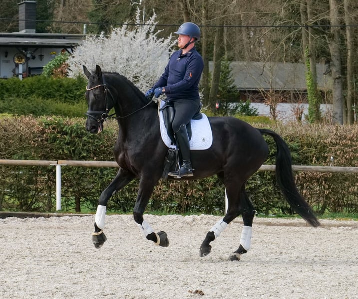 Name: Jiscalina Rasse: KWPN Geschlecht: Stute Geburtsdatum: 10.05.2014 Alter: 12 Stockmaß: 1.75m Farbe: Rappe Abstammung: mit Abstammungsnachweis Charakter: menschenbezogen, neugierig, intelligent, lernwillig, geduldig, gelassen, für Kinder geeignet Ausbildung/Eignung: geritten, Dressur, aktuell A und L erfolgreich hoch platziert, M ausgebildet, viel Potenzial Geländeerfahrung: aufmerksam, unerschrocken, nervenstark, gelassen, in der Gruppe Gesundheit: entwurmt, geimpft, beschlagen, ekzemfrei, Zähne kontrolliert, osteopathisch behandelt Haltung: Box, Paddock Besonderheiten: für ein Dressurpferd super sitzbequem, schmiede und verladefromm, herdenverträglich Die genannten Eigenschaften beruhen auf unserer persönlichen Einschätzung und stellen keine zugesicherten Merkmale dar. Preis: 25900 (Bruttopreis) Haben wir ihr Interesse geweckt? Um Ihnen einen besseren Eindruck von Jiscalina zu geben, senden wir Ihnen sehr gerne Ihr Reitvideo zu. Selbstverständlich stehen wir Ihnen für eine ausführliche Beschreibung des Pferdes, persönliche Beratung und zur Beantwortung aller Ihrer Fragen auch telefonisch zur Verfügung. Bitte schreiben Sie uns hierfür jederzeit eine WhatsApp Nachricht, oder rufen unter folgender Telefonnummer an: +49 15119487595 Unsere Telefonzeiten sind täglich von 7:00 - 13:30 sowie ab 20:00Uhr. Wir freuen uns über Ihre Kontaktaufnahme! Eine klinische oder Röntgenologische Ankaufsuntersuchung kann gerne vom Tierarzt Ihrer Wahl durchgeführt werden. Natürlich kann Jiscalina sicher und komfortabel in ihr neues Zuhause geliefert werden. Wir kümmern uns um alle notwendigen Vorbereitungen und den Transport, damit Ihr neues Pferd stressfrei, gut betreut, versichert und wohlbehalten im neuen Zuhause ankommt. Zurzeit präsentieren wir eine sorgfältig ausgewählte Vielfalt an Verkaufspferden. Bei uns finden Sie garantiert Ihr Traumpferd. Besuchen Sie uns auch gerne auf unserer Homepage unter: www.marvinsroyalhorses.de. Sehr geehrte Kunden, gerne stellen wir Ihnen unsere Pferde vor und führen, putzen, satteln, longieren, Bodenarbeit sowie Probereiten in der Reithalle, auf dem Platz oder im Gelände ist Ihnen möglich, um Ihr neues Familienmitglied näher kennenzulernen. Dieses kostet für ein Pferd 40€, für jedes weitere 30€ und wird beim Kauf wieder erstattet. Unsere Adresse lautet: Grube Ferdinand 50 53577 Neustadt Wied Google Maps: marvinsroyalhorses