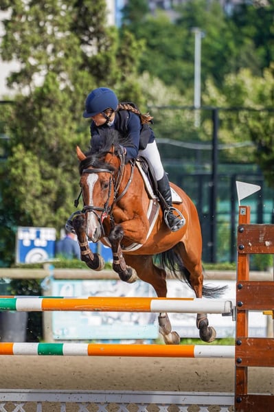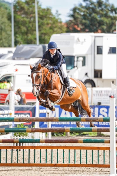 Mare Master of jumping, 1.64 m tall, jumping 1.20 m. Docile and easy to handle. Great results in the children's category.