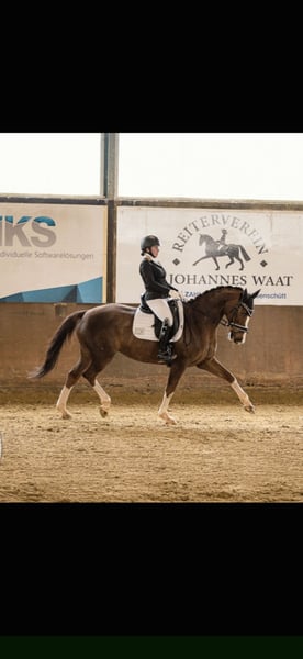 Verkaufe elegante KWPN-Stute, geb. 2009,Dunkelfuchs. Mit einem Stockmaß von 163 cm vereint sie typische KWPN-Qualitäten: eine hervorragende Grundausbildung, viel Bewegungsqualität und eine ausgeprägte Lernbereitschaft. Die gut gerittene Dressurstute zeigt ein harmonisches Erscheinungsbild und ist sowohl für ambitionierte Freizeitreiter als auch für den Turniersport bestens geeignet. Durch ihre zuverlässige Art und ihr angenehmes Temperament ist sie eine wertvolle Bereicherung für jeden Stall. Bei Interesse freue ich mich auf Ihre Kontaktaufnahme.