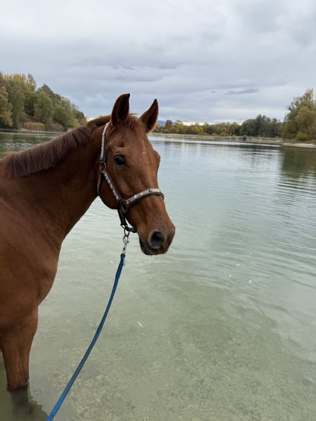 Liebevolle Fuchsstute als Freizeitpferd oder Beisteller abzugeben. Ist sehr brav auch mit Kindern.