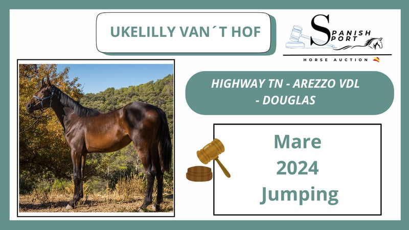 SPANISH SPORT HORSE AUCTION From 20 to 22 November !! She has good movements and a great character. His sire is the famous “HIGHWAY TN,” who is ridden by Williem Greve. “HIGHWAY TN” has achieved numerous victories in his international sporting career in 1.60 competitions. He won the Dutch Championship, numerous prestigious international competitions, and competed in the Olympic Games. He is a horse of great quality, achieving 24 clear rounds. His offspring are also proving their worth in the sport. His maternal line is also highly prestigious, “AREZZO VDL - DOUGLAS.” His siblings are still young but show very good qualities for the sport. Several show jumping horses in 1.30 and 1.40 competitions come from the maternal line.