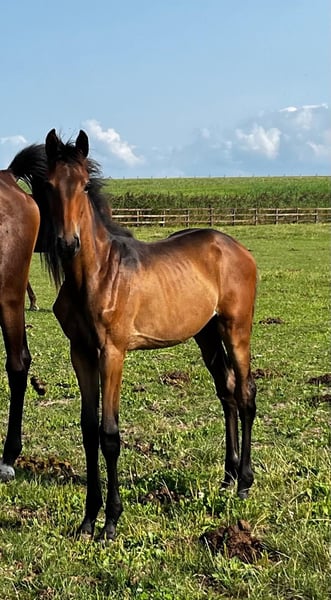 Questa puledra è un'ottima progenie in movimento di Dutch Dream e nasce da una giovane cavalla Revolution. L'abbiamo allevata noi stessi ed è uscita da una cavalla Elite ZZL, Hattrick (Astrix). Anche Dutch Dream è stato allevato da noi. Presso le nostre scuderie è possibile vedere diversi figli della linea della madre e del padre. Questo puledro si distingue per il suo trotto e canterello in salita. All'ispezione dei puledri di giugno è stata giudicata la migliore progenie di Dutch Dream. Il prezzo richiesto è di 6500,- IVA 9% esclusa.