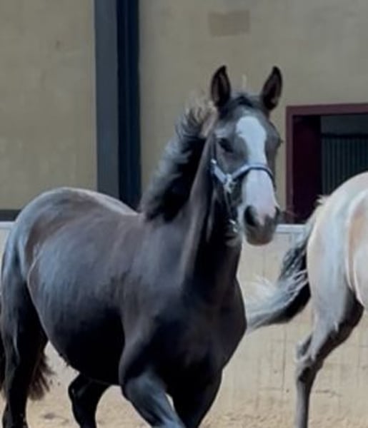 ⚜️ Uhreste Maxi de Elegante ⚜️ Suchen Sie ein Fohlen mit Ausstrahlung, Qualität und Charakter? Dann lernen Sie unsere Maxi kennen – eine außergewöhnlich schöne und vielversprechende Stute, entstanden aus einer einzigartigen Kreuzung zwischen dem temperamentvollen spanischen 🇪🇸 Blut des PRE und der modernen Eleganz des 🇳🇱 KWPN Warmblut. PRE-Hengste sind bekannt für ihre Versammlungsfähigkeit und können der modernen Dressurpferdezucht enorme Ausdruckskraft und Energie verleihen. Auch der mutige Charakter vererbt sich und wirkt sich absolut positiv aus auf die Nachkommen der Crossbreed Zucht. Diese atemberaubende junge Dame ist nicht nur ein echter Blickfang, sondern bringt auch alles mit, was man sich für eine erfolgreiche Zukunft im Sport und als zuverlässiger Partner wünscht. Impfen, entwurmen und Hufschmied - kein Problem! Halferführig auch mit Fremden. Sie ist voll Vertrauen in Menschen. Das Beste aus zwei Welten vereint – Kreuzung PRE x KWPN KWPN-Stute, geboren am 20.03.2024 aus Elegante de Millan III x Lombardi x Ultimo Erwartetes Endmaß: + 1,70 m Unsere Fohlen stehen – wenn es das Wetter zulässt – ab der Geburt 24/7 im Freien. Zahlreiche Studien zeigen, dass dies die Basis für ein besonders starkes Pferd ist. Dadurch sind sie später weniger verletzungsanfällig, und Sehnen und Knochen werden besonders widerstandsfähig. Sie wachsen als Familie auf – Stuten, Hengstfohlen und Stutfohlen zusammen – was ihre soziale Entwicklung enorm fördert. Etwas, das vielen Fohlen in den ersten Lebensmonaten fehlt. Auch später in der Aufzucht leben sie in einer gemischten Herde mit Pferden aller Altersklassen, was für eine gute Erziehung durch eine klare Hierarchie sorgt. So erhalten unsere Fohlen eine starke Grundlage und den bestmöglichen Start ins Leben. Davon werden sie ihr ganzes Leben lang profitieren – und auch für die zukünftigen Besitzer ist es ein großes Plus, ein Pferd mit einer so gesunden und stabilen Basis zu haben. Unsere Fohlen werden bereits kurz nach der Geburt an alles gewöhnt: Traktor, Laubbläser, Regenschirm, Freischneider – alles, was im Alltag Lärm macht.