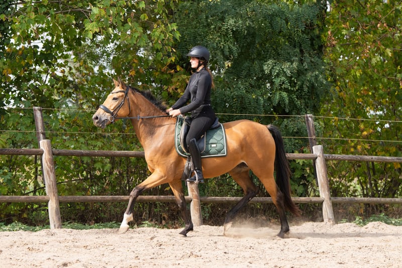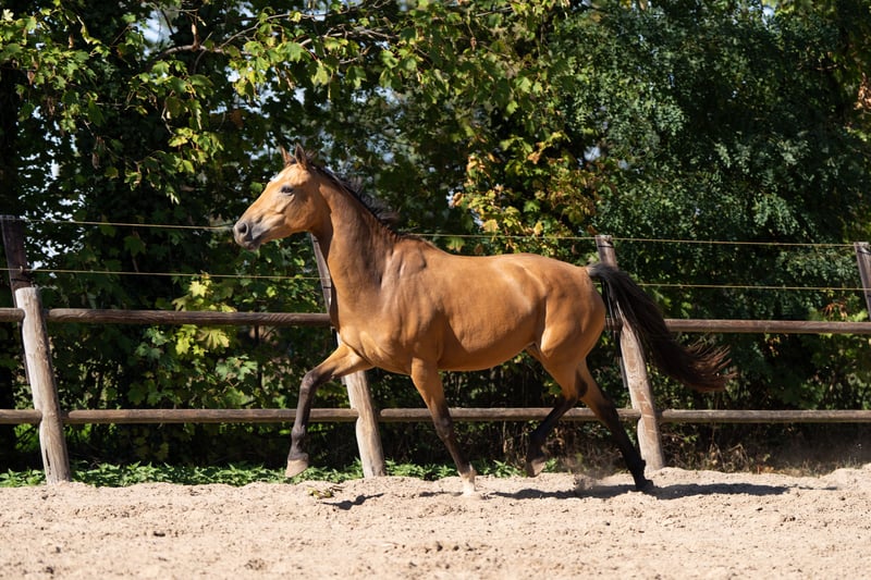 Sehr brave, talentierte vierjährige Stute. Sie ist seit einigen Monaten unter dem Sattel und nimmt die Arbeit positiv auf. Mit ihrer Falbfarbe und ihrer korrekten Konstitution wird sie im Viereck eine auffällige Erscheinung sein. Sie bewegt sich mit viel Ausdruck und Nachdruck. Allround gezüchtet, in ihrer Abstammung sind sowohl Dressur- als auch Springlinien zu finden. Sie ist sehr lieb und anhänglich und steht mit anderen Pferden draußen auf der Weide. Röntgenologisch untersucht, inklusive Hals- und Rückenaufnahmen. Sandro's Match x Camlough Delphi