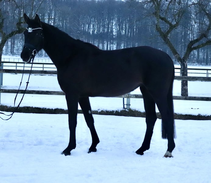 Zum Verkauf steht eine 4-jährige Rappstute, die aufgrund von Bestandsreduzierung und Zeitmangel ein neues, förderndes Zuhause sucht. Die Stute ist seit kurzer Zeit unter dem Sattel und präsentiert sich dabei sehr brav und leichtrittig. Sie arbeitet aufmerksam mit und zeigt eine positive Einstellung zur Arbeit. Ein aktueller Röntgen-TÜV ohne Befund liegt bereits vor. Auch züchterisch ist sie interessant: Aus der direkten Mutter stammt ein gekörter Hengst von Million Dollar. Ein junges, vielversprechendes Pferd, ideal für Reiter, die ein Nachwuchspferd mit Potenzial suchen.