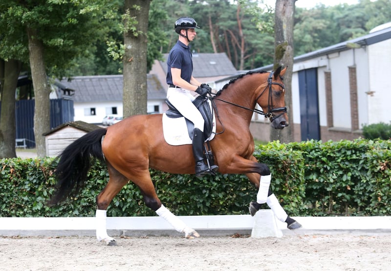 Raaf ist eine Tochter des Oldenburger Grand Prix-Hengstes Giano und wurde bei der Limburgschen Zentralen Körung KWPN 2024 zur Reserve-Kampionesse gekürt. Mit drei äußerst guten Grundgangarten und einer großartigen Arbeitsbereitschaft ist Raaf der Traum jeder Reiterin und jedes Reiters. Raafs Mutter Marie-Claire ist eine Tochter des KWPN-Hengstes Ferdinand und selbst im Dressursport auf ZZ-Zwaar-Niveau aktiv. Zudem ist sie eine Vollschwester des zugelassenen Hengstes L-Mo. Die Urgroßmutter von Raaf, die Stute Kurante, ist ebenfalls die Mutter des internationalen Grand Prix-Pferdes Double Dutch von Alexandre Ayache, des internationalen Grand Prix-Pferdes Gabber von Roberto Brenna sowie des internationalen Springpferdes Radja.