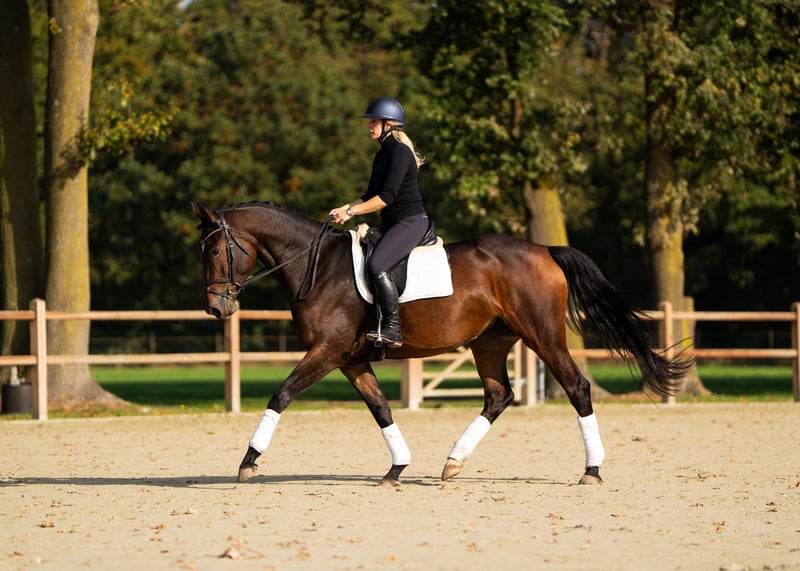 Sind Sie auf der Suche nach einem talentierten Sportpferd mit Qualität, Einstellung und Ausstrahlung? Lernen Sie Rheia GG kennen, eine hübsche und arbeitswillige Stute aus einer bewährten Sportlinie. Rheia ist die Tochter des Grand-Prix-Hengstes Hermes (Easy Game), bekannt für sein kraftvolles Hinterbein, Leichtfüßigkeit, Arbeitswille und Intelligenz. Auf der Mutterseite stammt sie von einer Stute mit exzellenter Bewegungsmechanik und starkem Fundament ab. Eine Mutterlinie, die bereits mehrere Pferde in die leichte Tour und höher gebracht hat! Rheia ist ein junges Pferd, aber äußerst gelassen im Umgang, lernwillig und hat eine angenehme Anlehnung unter dem Reiter. Seit März dieses Jahres wird sie leicht geritten. Ein freundliches Wesen und Qualität in einem. Hermes x Generation Odette B / Stute / 2021 / 1,73 m / KWPN / Ster / D-OC / PROK / WFFS-frei Rheia wurde geröntgt (freigegeben), inklusive Hals und Rücken, PROK. Sie wird selektiv verkauft. Ich spreche Deutsch, I speak English (Harry van Gameren, Züchter und Besitzer)