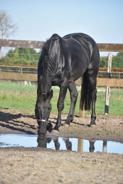 Ontmoet Paulina: werkelijk waar een paard uit een sprookje. Met haar diepzwarte vacht en sprekende ogen en mooie , volle bouw is ze een echte verschijning. Paulina is 5 jaar oud, ongeveer 1.72 m hoog en heeft een uitzonderlijke afstamming: Kjento x Lord Leatherdale. We hebben haar rechtstreeks van de eerste eigenaar overgenomen, waar ze van jongs af aan met veel aandacht is opgegroeid en goed in de hand is geweest. Ze is een echte lieverd met een fijn karakter. Blijft gewoon zonder problemen alleen op stal staan terwijl ze toch heel sociaal is . Paulina is onlangs volledig klinisch en röntgenologisch goedgekeurd, inclusief rugfoto’s. Momenteel zijn we haar training verder aan het oppakken, wat ze met veel talent en inzet doet. Naarmate haar opleiding vordert, zal de prijs meegroeien. Prijs: 9750,- incl merkzadel en dekje