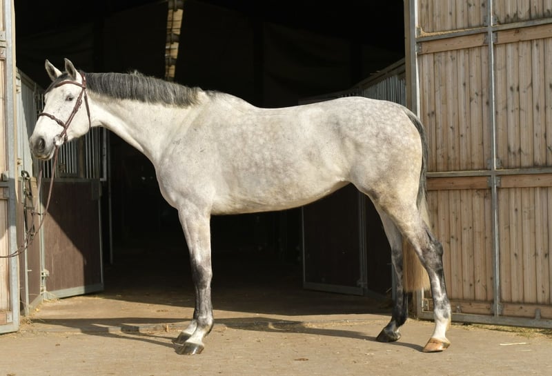 Stunning KWPN Mare (2021) General Information: - Breed: KWPN (Royal Warmblood Horse of the Netherlands) - Year of Birth: 2021 - Height: 17.1 hh - Pedigree: Outstanding bloodlines that open all doors in show jumping Features: - X-rays: Clear, taken on 11/23 - Jumping Ability: Excellent technique with impressive style - Temperament: Very well-behaved and approachable, both in the stable and under saddle - Trail Compatibility: Excellent rideability in the field, calm and reliable Training: The mare is well-trained in basic gaits and already shows positive responses under saddle. She is ideal for someone looking to further develop her for competition. Breeding Potential: With her remarkable pedigree, she is also highly interesting for breeding purposes. Her combination of beauty, size, and talent makes her a valuable addition to any stable. Special Offer: Immediate purchase grants you a 5% discount on the sale price! Test Ride: We offer you the opportunity to test this mare for one week. This trial period can be accompanied by experienced trainers, and you have the option to combine lessons with testing. Please note that this is subject to a trial fee, which will not be deducted from the purchase price. Viewing: You are welcome to visit and see the mare in person. The fee for a test ride or viewing is €30 per person. For more information or to schedule a viewing, please feel free to contact me!