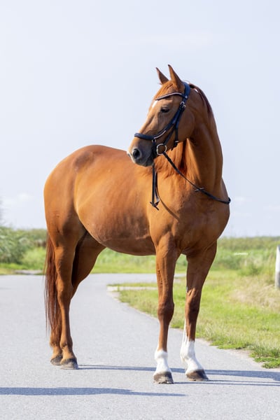 With a heavy heart, we are forced to find a new home for our dear girl Prya due to personal circumstances. Prya is a 5-year-old chestnut mare, approximately 1.67 meters tall. She was born on June 1, 2020. Her pedigree is Kjento x Crack C. Prya is quite a spirited mare who needs to know who’s in charge, but once she trusts you, she will go through fire for you. She is very well-behaved in handling, but she remains a young horse. She has been backed but not yet extensively ridden. Due to her sometimes lively character, she is not suitable for a beginner rider. We have taken her out for small rides in the fields, which she absolutely loves. Prya is quite a social horse and enjoys having a companion, whether a gelding or mare, when outside. Do you think you might be the right person for Prya? Are you curious to learn more about her? Or do you have any questions? Please don’t hesitate to contact us.
