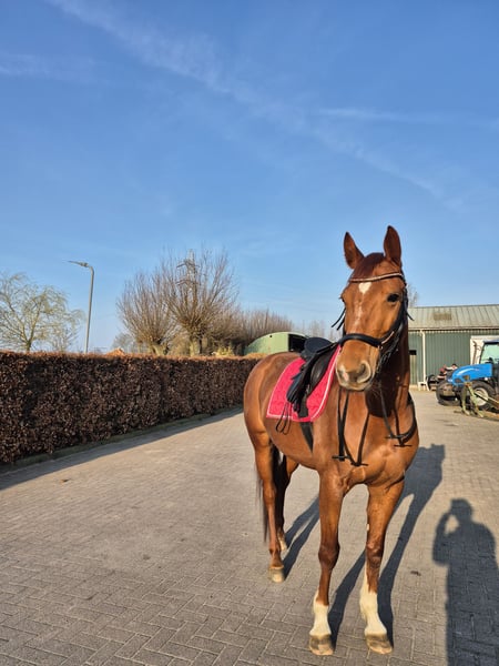 Met veel pijn in ons hart moeten we door privé omstandigheden, een nieuw huisje zoeken voor ons vriendinnetje Prya. Pryamora is een vosmerrie van 5 jaar en ongeveer 1.67 hoog. Ze is geboren op 1- 6- 2020. Prya haar afstamming is Kjento x Crack C. Prya is best een pittige dame die even moet weten wie er de baas is, maar als je haar eenmaal voor je hebt gewonnen gaat ze voor je door het vuur. Prya is in de omgang super braaf maar blijft een jong paard. Prya is ingereden maar nog niet goed doorgereden. Door haar soms wat pittige karakter is ze niet geschikt voor een beginnende ruiter. Wij zijn zelf al met andere paarden kleine rondjes erop naar buiten geweest, dit vind ze mega leuk om te doen. Prya is best een sociaal paardje en geniet dan ook van een vriendje of vriendinnetje bij haar buiten. Denk jij dat je iets voor prya bent en ben jij benieuwd naar wie ze is? Of heb je eventueel vragen? Neem dan zeker contact op.