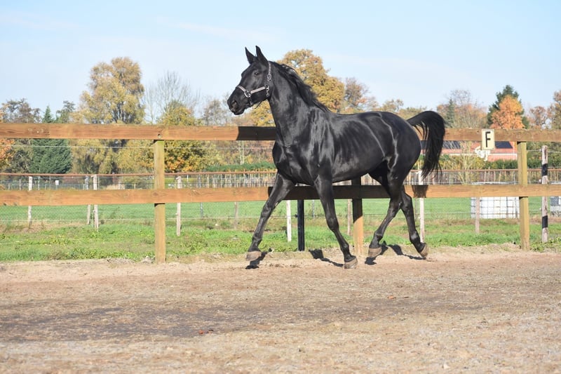 Lerne Paulina kennen: Ein echtes Pferd aus einem Märchen. Mit ihrem tiefschwarzen Fell, ausdrucksvollen Augen und ihrer schönen, kräftigen Konstitution ist sie eine beeindruckende Erscheinung. Paulina ist 5 Jahre alt, etwa 1,72 m groß und besitzt eine außergewöhnliche Abstammung: Kjento x Lord Leatherdale. Klicke HIER für ihre Papiere. Wir haben sie direkt vom Erstbesitzer übernommen, bei dem sie von klein auf mit viel Liebe aufgezogen wurde und gut im Umgang ist. Sie ist eine echte Schmusekatze mit einem feinen Charakter. Sie bleibt problemlos allein auf der Stallgasse stehen, obwohl sie sehr sozial ist. Paulina wurde kürzlich vollständig klinisch und röntgenologisch untersucht, inklusive Rückenszertifikate. Derzeit bauen wir ihr Training weiter aus, was sie mit viel Talent und Einsatz zeigt. Mit fortschreitender Ausbildung wird auch der Preis steigen. Preis: 9.750 € inklusive Marken-Sattel und Abschwitzdecke