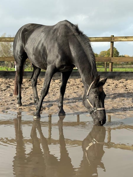 Ontmoet Paulina: werkelijk waar een paard uit een sprookje. Met haar diepzwarte vacht en sprekende ogen en mooie , volle bouw is ze een echte verschijning. Paulina is 5 jaar oud, ongeveer 1.72 m hoog en heeft een uitzonderlijke afstamming: Kjento x Lord Leatherdale. Klik HIER voor haar papier . We hebben haar rechtstreeks van de eerste eigenaar overgenomen, waar ze van jongs af aan met veel aandacht is opgegroeid en goed in de hand is geweest. Ze is een echte lieverd met een fijn karakter. Blijft gewoon zonder problemen alleen op stal staan terwijl ze toch heel sociaal is . Paulina is onlangs volledig klinisch en röntgenologisch goedgekeurd, inclusief rugfoto’s. Momenteel zijn we haar training verder aan het oppakken, wat ze met veel talent en inzet doet. Naarmate haar opleiding vordert, zal de prijs meegroeien. Prijs: € 9750,- Incl merkzadel en dekje