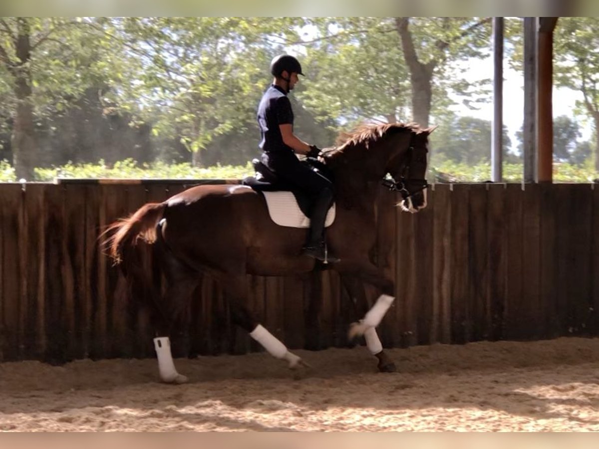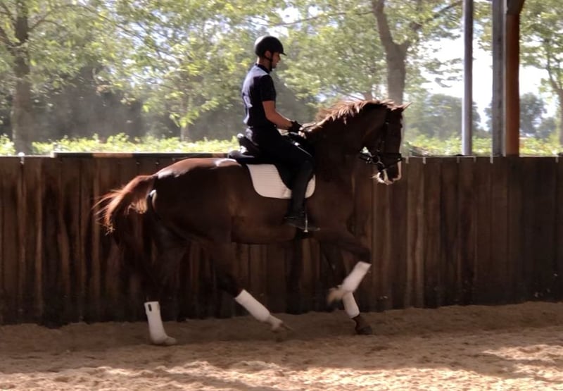 Deze 6-jarige merrie heeft een goede stap en een zeer goede galop. Brave omgang, bij het laden en bij de smid. Wisselt van training.