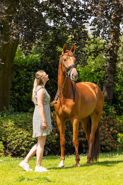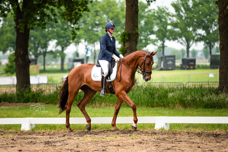 Ik bied mijn prachtige merrie OToermalijn DDL te koop aan: een 7-jarige Fürst Jazz / Gribaldi, geschikt voor een ervaren ruiter of als fokmerrie. Belangrijkste kenmerken: - Leeftijd: 7 jaar - Geslacht: Merrie - 178cm - Dressuur niveau: L Afstamming: Fürst Jazz / Gribaldi (Duitse dressuurlijn) Vader is de importante Fürst Jazz die een indruk maakt in elke ring en de eerste nakomelingen zijn goedgekeurde hengsten. Wat hem nu al een succesvolle dekhengst maakt. Vader van moeder is de legendarische Grand Prix hengst Gribaldi die enorm succesvol was in de dressuurfokkerij. OToermalijn DDL is een halfzus van Aquamarijn (geklasseerd op de Olympische Spelen). Fokkerij: Heeft al een gezond veulen voortgebracht. Ze is een ontzettend lieve moeder. Braaf in omgang en laat alles toe. OToermalijn DDL heeft een mooie dressuuraanleg, met goede gangen en een fijn karakter aan de hand. Onder het zadel is ze energiek en scherp. Ik zoek hierdoor een gevorderde ruiter. Keuring k.k. Meer informatie en video’s op aanvraag.