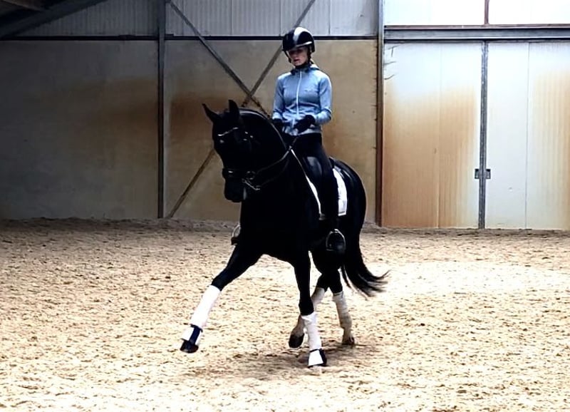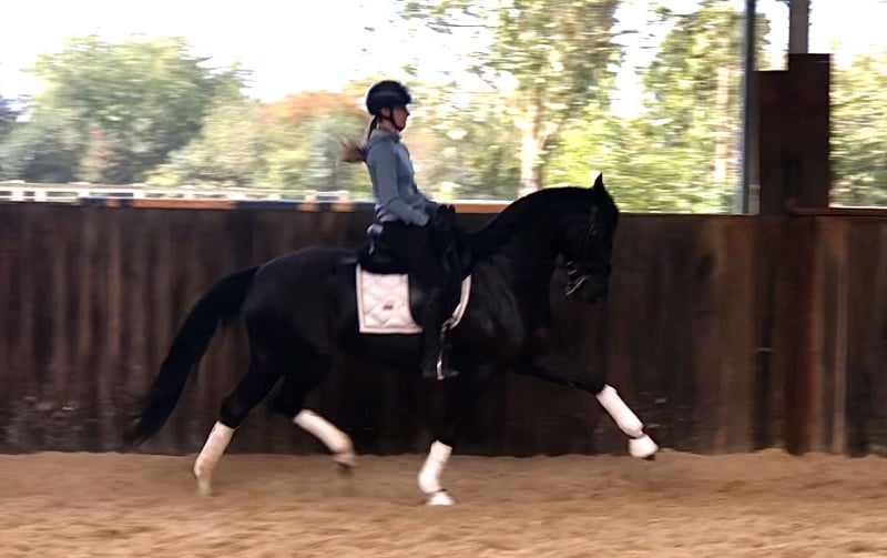 Diese 7j Stute ist sehr angenehm zu reiten. Serienwechsel und Pirouetten sind schon in Training. Macht einen sehr eleganten Eindruck. Ist ein Damenpferd/Mädchenpferd. Keine Unarten. Gesund.