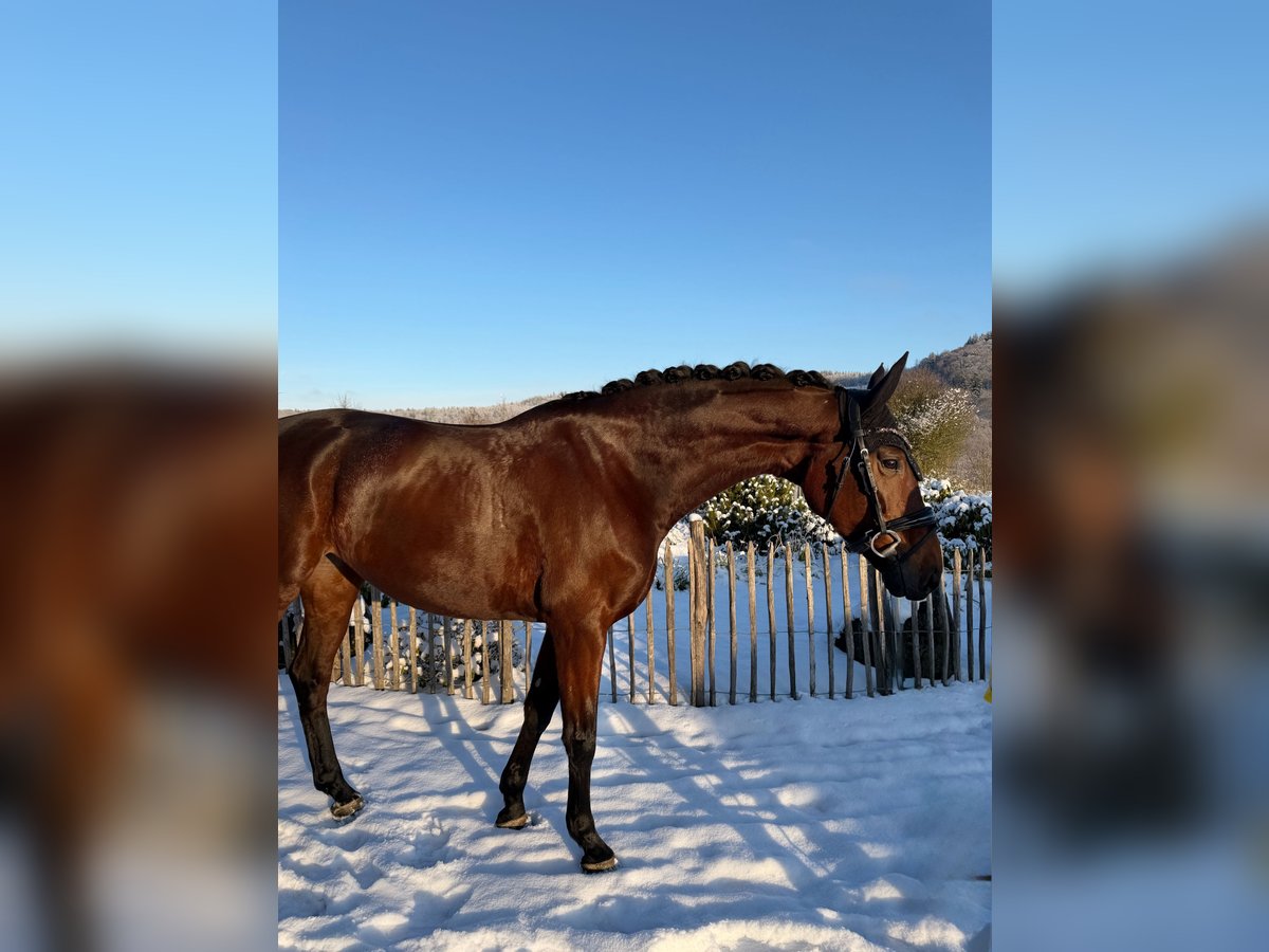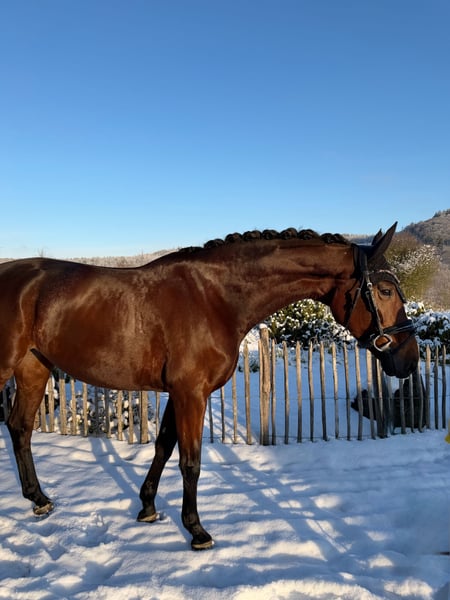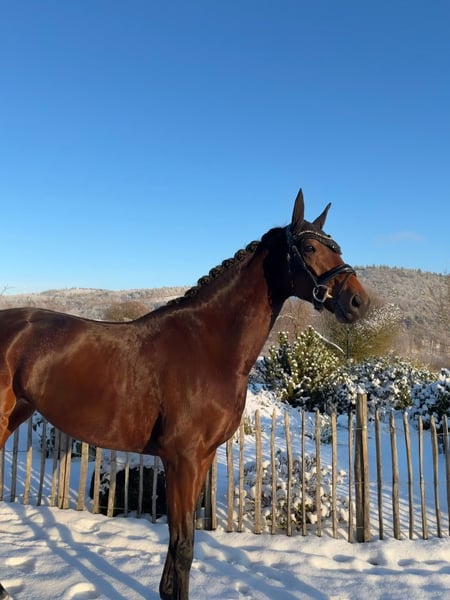 For sale is this 8-year-old mare by Baron x Deniro, who has already achieved placings up to the advanced level! This impressive mare impresses with three outstanding gaits and her great willingness to learn. All movements can be easily and playfully collected without much effort, making her suitable even for riders who are still gaining experience. She is well-schooled in the arena, on the outdoor dressage court, and in the terrain, always eager to please her rider. Naturally, she is calm and cooperative at the farrier, and loads well. Thanks to her excellent pedigree, this mare is also highly interesting for breeding purposes! A current veterinary certificate is available. She is located in 35708 and can be visited and tried out at any time. For further questions and interest, please contact: 017620052380, WhatsApp available as well.