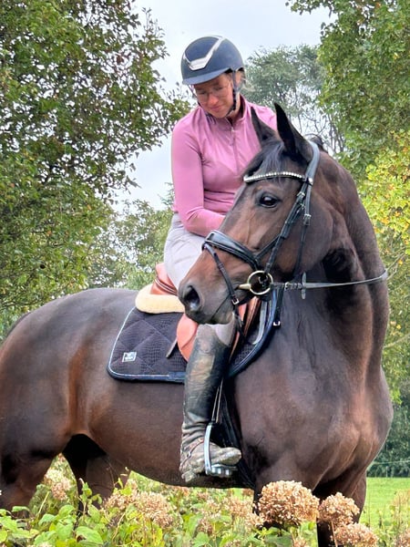 New Style is een 8 jarige chique elitemerrie uit een zeer goede sportstam. New Style is dressuur M geklasseerd en heeft vrijwel alle wedstrijden gewonnen. Ze heeft nog niet lager dan 68% gescoord. Ze is helemaal rontgenolgisch gezond en heeft geen (stal) gebreken. Foto’s incl rug en hals zijn beschikbaar. New Style is een aanhankelijke en sensitieve merrie. Ze is gemakkelijk in de omgang. Ze is licht te rijden en heeft veel souplesse en looplust. Ze heeft veel aanleg voor dressuur maar vindt buiten rijden, cross en springen ook heel leuk. New Style is niet bang en houdt van afwisseling. Ze is uitermate geschikt voor een ruiter die houdt van een sensitief en intelligent paard met ‘go’. Ze komt rechtstreeks van de fokker. Ze was als veulen kampioen en heeft op het NK meegedaan. (NMK veulen). Haar familie waarvan oa grootmoeder Vienna D zijn hier te bekijken. Ze is interessant voor sport en fokkerij. Er komen verschillende LT en GP paarden uit de moederlijn. New Style heeft twee prachtige nakomelingen. Op de keuring had New Style 80 punten voor beweging en 80 punten voor exterieur. New Style: Incognito x Ampere x Jazz (Vienna D) Voor meer informatie over de sportstam van New Style zie onze facebookpagina ‘DALMHORSES'’