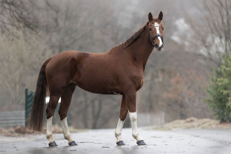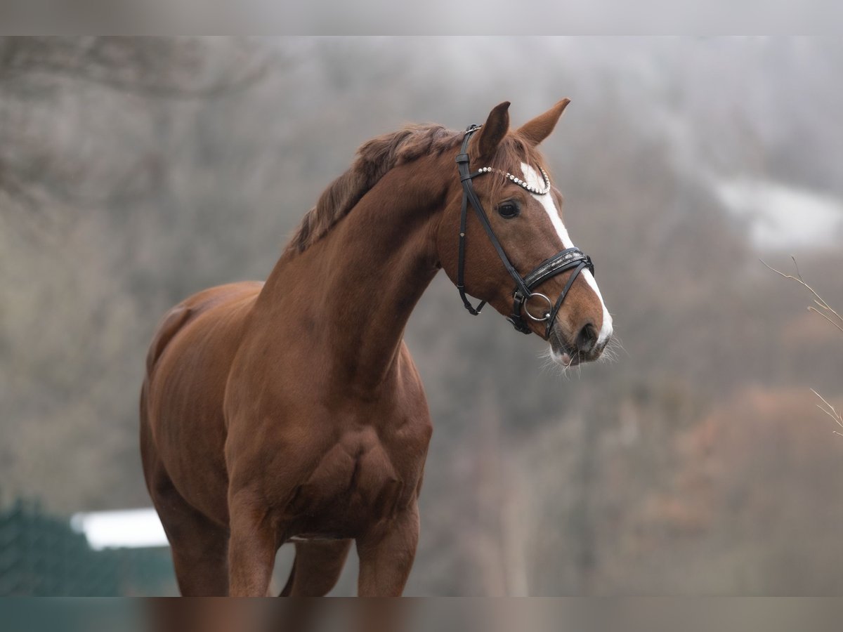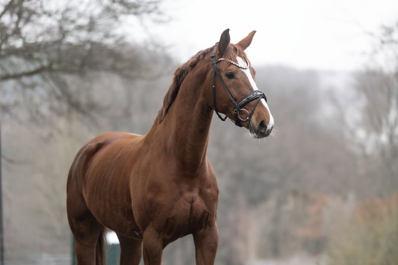 A highly charming 8-year-old chestnut mare with a height of approximately 16.1 hh is for sale. She combines top sport potential with a balanced, honest character. Having already foaled, she is now back in training and actively competing. Her physical development and inner maturity make her an especially pleasant partner under the saddle. Currently, she competes at the dressage horse level A and impresses with her excellent rideability and consistent willingness to perform. Notably, her above-average, rhythmically secure walk with plenty of space is outstanding. Her trot is elastic, relaxed through the body, and comfortable to sit, while her canter is lively, uphill, and expressive. She offers excellent prerequisites for further development in dressage and clearly shows potential for higher classes. Her pedigree is equally impressive: her lineage includes proven top sires such as Florestan I, renowned for his influence on rideability, movement quality, and willingness to perform in dressage. This valuable genetic background is clearly reflected in her dynamic movement, her inner qualities, and her work enthusiasm, making her not only a promising sport horse but also of interest for breeding. Beyond her sporting qualities, she impresses with her exceptionally balanced temperament. She is well-behaved, uncomplicated, and always clear-headed. Her friendliness towards children is especially noteworthy – she loves contact with kids and remains patient and gentle when groomed. She is also very easy to handle in daily life and within the herd. This mare is ideally suited for ambitious leisure riders or riders with sporting goals who are looking for a talented yet reliable horse. She combines quality, rideability, pedigree, and character – a combination that is not to be taken for granted. A recent X-ray report is available. A horse with great future potential and that certain extra of heart and charisma. She is familiar with dogs and tractors. Location: 53578 Windhagen. If you are interested or have questions, we look forward to hearing from you – Phone: 0176-82205841 A meet-and-greet is possible almost at any time. For the introduction and trial ride, we charge a flat fee of €30. Of course, the option to have her transported directly to her new home is also available.