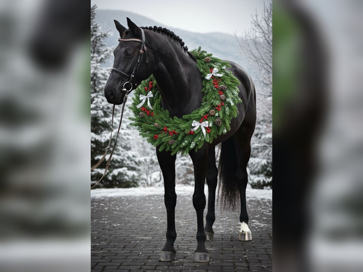 Diese elegante schwarze Stute überzeugt mit drei ausdrucksstarken Grundgangarten und einem hervorragenden Interieur.