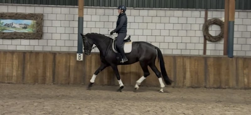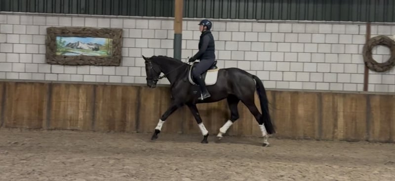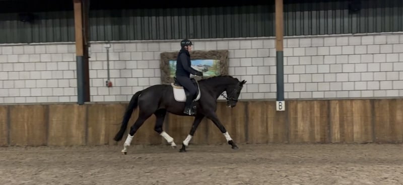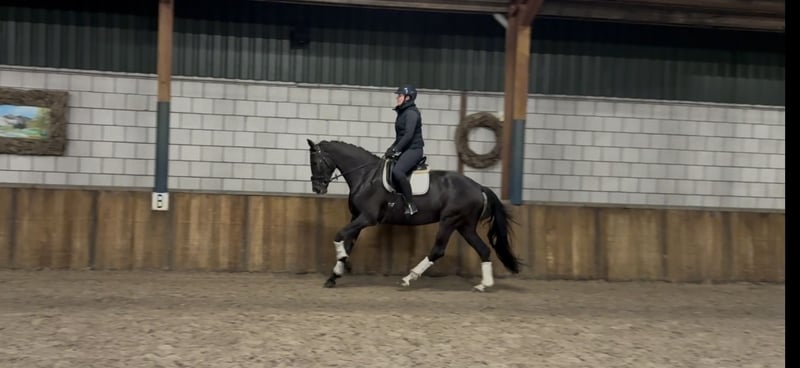 🎄😍Wow😍🎄 Ein echter Blickfang 🤩 Diese wunderschöne, stekelhaarige schwarze Stute ist wirklich ein Hingucker! Und jeder weiß, dass man von einem schönen Teller nicht essen kann… Aber wir haben Glück! Denn sie ist nicht nur hübsch, sondern auch von freundlichem Charakter. Dressurmäßig auf Niveau L. Sie weicht höflich einen Schritt beiseite, hat angenehme Gänge und lässt sich gut reiten. Sie ist 7 Jahre alt, 1,71 m groß und wurde KWPN-gezüchtet, v. Ferdeaux. Im Umgang ist sie ein super liebes Pferd. Sie genießt Aufmerksamkeit, steht beim Putzen ruhig still und auch das Waschen ist kein Problem! Sie gibt brav ihre Hufe und geht entspannt an der Hand mit. Sie ist definitiv kein „Langweiler“ und behält ihre Umgebung gut im Blick, aber mehr als ein bisschen Umschauen 👀 macht sie nicht! Ein tolles Pferd für den Übergang von Pony zu Pferd oder für Sport und Hobby! Ein korrektes und gesundes Pferd. Standort: Oud Gastel, NL ☎️ 0031-610197456