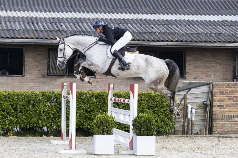 Very beautiful and impressive grey. This horse has 1.30m experience. Nadine has a good attitude and more blood than her appearance suggests. She has a big canter, is easy to ride towards the jump, and gives the rider a good feeling. Not spooky and with enough scope. Suitable for a semi-professional rider who can further develop and strengthen her. As a 5-year-old, she competed in the KWPN Championships and reached the final. Sire Jacadello (Cascadello I x Lordanos) competed at 1.20m level and comes from a strong Holsteiner line. Through Casall (1.60m), he brings technique, attitude, and modern sport qualities. His first offspring are competing up to 1.35m level. Dam The dam, Grace-L, is a daughter of Bustique (1.45m) and carries proven sport genes through Indoctro (1.40m). Damline The damline is strong and broadly built. Among others, Jessica (1.40m) appears from the direct line. In the second line, horses such as Esgracia (1.40m) and Bogracia MB (1.35m) can be found. Further, there are multiple horses at 1.30m–1.35m level, such as Kazan, Troyko L, and Furhy L. At higher levels, we see Alida Nike (1.55m), Hamont (1.50m), and Courville L (1.50m). The line demonstrates a consistent production of sport horses from 1.30m up to 1.55m level.