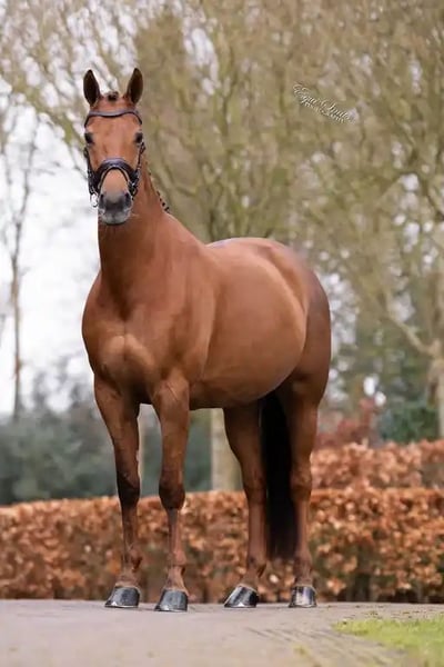 Nice 9-year-old mare by Morricone x Jazz for sale. Morribelle has been under saddle for three years and is currently classified at Z2 level. She remains calm and focused during rides and competitions. When you ride her confidently and engage with her, she can become quite enthusiastic. In handling, she is very sweet and also social with other horses. She can easily stand alone in the stable without stress. She is also accustomed to riding alone or in a small group through the woods. She is suitable for a somewhat insecure rider but not for a complete beginner. Price: €32,500 excluding VAT. Viewings in Beilen (Drenthe). Tel: +31 630223977