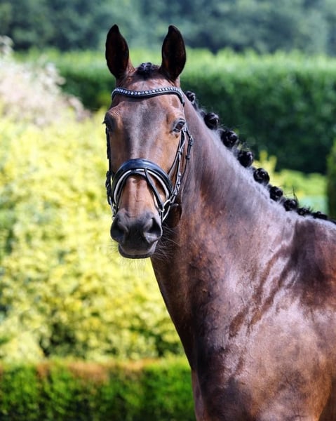 Our wonderful, sweet, and reliable Gregje. Gregor is 9 years old, 172 cm tall, and a true cuddle bear. He loves cuddling, grooming, and attention. Gregor has nearly won everything there is to win in his category. He knows all the exercises and is a real professor. He is very pleasant and light to ride, also responsive to the aids. If you're looking for a pasture mate who can also enjoy occasional nice rides and still has a lot to teach, Gregje is the horse for you. Videos available. He can be turned out in the field with any other horse, pony, or Shetland. Easy to load and farrier-friendly. In other words, no fuss. He is fantastic. Gregor competes in Intermediaire I (light tour) and has won numerous championships. He is now being offered because competitions cause him a lot of stress, leading to the development of stomach ulcers. He also has a hernia. He will only go to a home where he can be with his kindred spirits and not be pushed into full competitive sport. A few local competitions are no problem, but we no longer want to pursue a top-level sports career with him. The home or place where he goes is more important than the price. He will only go to the right person!
