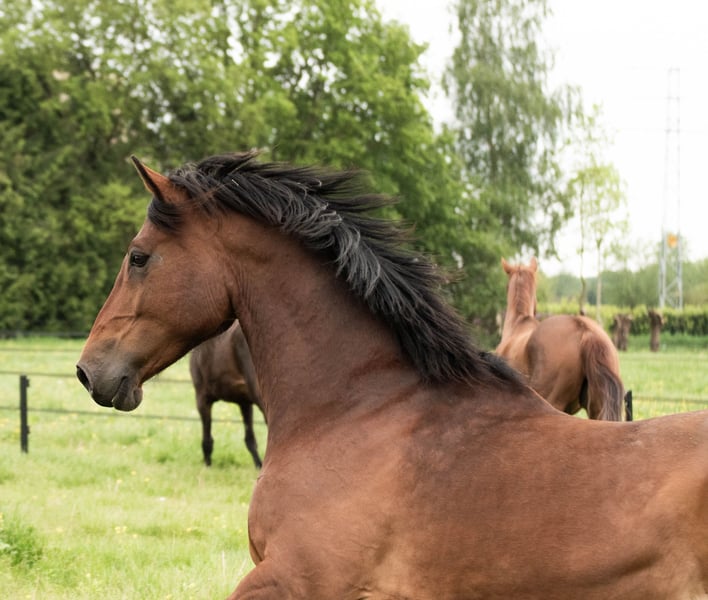 En raison d'une fatigue musculaire et d'un manque d'ambitions dans le sport Puissant hongre de 9 ans, environ 1,78 m. Il a été entraîné en dressage L/M, saut d'obstacles 1,10 m. En concours d'endurance B/L. Je ne l'ai plus sorti depuis 2023. Très facile à charger, docile en voiture. En raison d'une blessure, il a peu travaillé ces deux dernières années, ce qui m'a fait perdre toute ambition de continuer à monter régulièrement. Lugano a été très actif jusqu'à il y a 2/3 ans, en dressage, saut et endurance. C'est un cheval très agréable mais exigeant à monter, et il peut encore progresser. Il a toujours été une belle présence en compétition, que ce soit en dressage ou en saut. J'ai personnellement beaucoup monté en extérieur, ce qu'il a toujours fait avec calme. Ce n'est absolument pas un cheval pour débutants et il ne sera vendu qu'à un cavalier expérimenté. C'est un cheval très doux en main, mais sous la selle, il doit être travaillé. Avec du respect mutuel, il fait tout pour vous. Son caractère est gentil, sensible, mais aussi un peu dominant. Il monte à nouveau sous la selle depuis deux semaines, mais il n'est pas encore en forme.