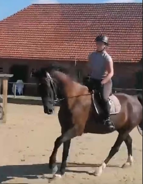 È molto delicato nell'imbocatura, un buon compagno nel dressage ed è stato anche saltato dal precedente proprietario. Pertanto, è adatto sia a cavalieri esperti che a principianti, poiché si comporta molto bene e accetta facilmente le richieste del cavaliere. Anche la mia nipotina di tre anni può cavalcare Joep. 😊 Come cavallo da carrozza, ha partecipato a turni singoli, a due e a quattro. Joep si lascia caricare con facilità ed è anche semplice da gestire dal ferratore. Da me, viene sempre ferrato tutto intorno. In strada, non ha problemi con grandi camion e trattori. Purtroppo devo separarmi da lui, perché Joep non ha voglia di partecipare a grandi eventi come le parate del giorno della festa. Per questo motivo, non posso impiegarlo molto presso di me. Su richiesta, invio volentieri video.