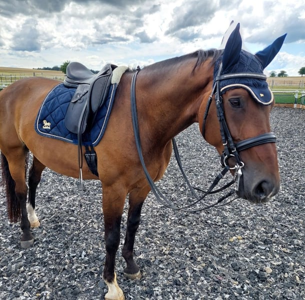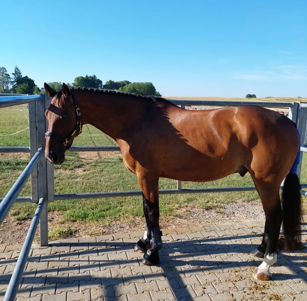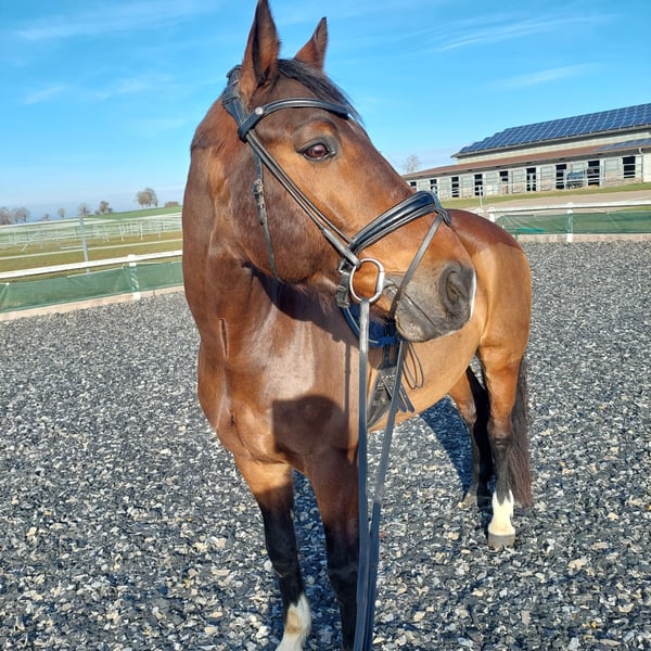 With a heavy heart, I must sell my beloved KWPN gelding. He gets along well with other horses and is currently housed in a paddock box with daily turnout. He was born and raised in the Netherlands, trained up to S-level, and has been shown in competitions. Documentation from the Netherlands is available. He has been in our possession for four years. Working with him daily is always a great pleasure and brings much joy. He is gentle, forgiving of mistakes, and has never been ill while in our care. He is suitable for children, beginners, and advanced riders alike. An excellent teacher for novices or pony riders transitioning to a larger horse. He has been regularly vaccinated, is healthy, and is familiar with farrier and veterinarian care. He enjoys groundwork and lunging. He also likes jumping, although this has not been further developed with us. Due to health reasons on my part, he is only being sold into good, loving hands. This is not a desperate sale. Unfortunately, he is not currently in regular training and is therefore being sold well below value.