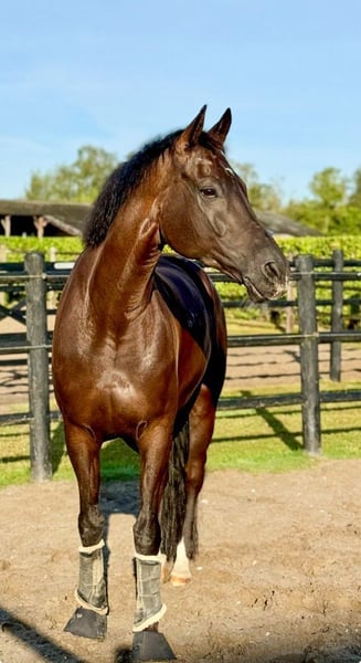 With a heavy heart, we offer Blacky for sale. He is a 14-year-old gelding who performs at Z2 level and is the sweetest horse you could wish for. Our 14-year-old daughter has stopped riding, which is why we are now looking for a new, loving home for him. For Blacky, we are looking for a 5-star home where he can be versatile. In addition to dressage, it would be wonderful if he could also go to the forest and the beach for enjoyable outdoor rides. Blacky is very well-behaved when loading, behaves well with the farrier, and is friendly towards other horses. Although our horses are kept separately in the pasture, we believe he can also function well in a group. He loves to stay in his stable at night, so that is something we are looking for him. Blacky is very suitable as a schoolmaster for someone who has already completed the basic classes and is also ideal for the transition from pony to horse. A friendly rider who can ride with subtle aids would be a good match for him. We hope he finds a new home where he can grow together with the rider with love and attention. Blacky's birth name is Gelre. Blacky is radiographically and clinically approved for both neck and back as of 22-08-2022.