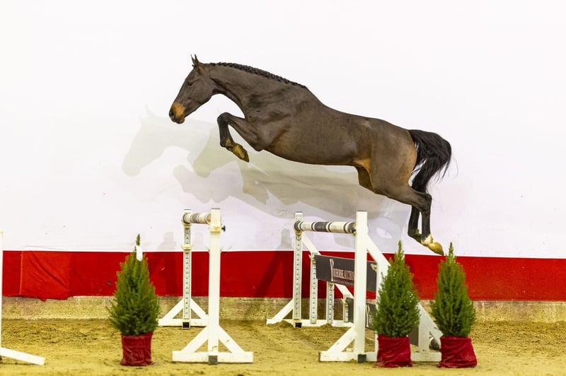 Tiboy is a well-built and attractive horse with an appealing sport model and a good way of moving. He shows balance, easy jumping technique. His take-off is quick and light, and he jumps with overview and correctness. His movement is functional and light-footed, making him pleasant to develop further. He has a good canter, thinks towards the fence and shows sufficient athletic ability to progress in sport. Tiboy is bred from Babylon Berlin x Harley VDL. Sire Babylon Berlin combines sharpness and reflexes with strong international jumping genetics through Brantzau VDL and Baloubet du Rouet. Brantzau VDL competed at 1.40m level, while Baloubet du Rouet reached 1.60m Grand Prix level and became one of the most influential showjumping sires worldwide. The dam Havanna, by Harley VDL, contributes scope and rideability. Harley VDL himself competed at 1.55m level and is known for producing horses with quality and a good mentality. Further down the damline we find Mirgane (by Indorado), coming from a proven Dutch performance family. Indorado competed at 1.60m Grand Prix level and left a lasting impact on international showjumping. This family has produced multiple horses competing from 1.30m up to 1.60m level, with influential bloodlines such as Mr. Blue, Corland and Heartbreaker. Tiboy combines an attractive way of moving with a strong and reliable pedigree, making him an interesting sport prospect with long-term potential.