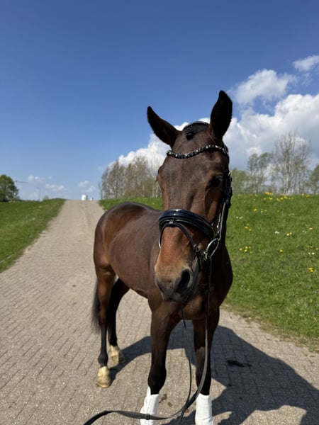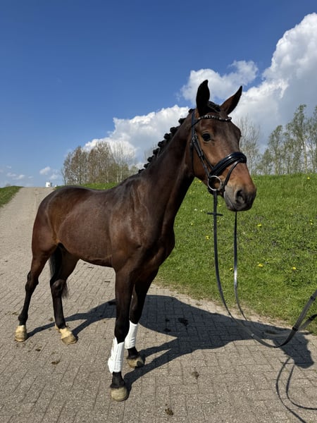 À vendre, notre jeune et talentueux hongre Thunder D, surnommé Donder. Un jeune cheval avec une excellente attitude, de la qualité et un bel avenir devant lui. Donder mesure 1,60 m mais devrait encore grandir. Il est né dans la sélection KWPN, de Lantanas x Diego. Donder a récemment été monté en selle et s’adapte très bien au travail. Il se laisse déjà monter proprement et a déjà effectué son premier saut sous la selle, ce qui le rend très polyvalent ! Il a également été plusieurs fois en extérieur, qu’il aborde avec calme et douceur. Malgré son jeune âge, Donder se montre déjà très obéissant en dressage et pourrait convenir à un cavalier plus jeune ou moins expérimenté. Bien qu’il soit encore en formation et doive confirmer ses compétences, un accompagnement est recommandé. Donder est très attaché à l’humain, sociable avec les autres chevaux, calme chez le maréchal-ferrant et n’a aucun problème de box. Il a été examiné cliniquement et radiographiquement, avec un certificat en ordre ; pour un contrôle, le vétérinaire est à votre disposition. Pour plus d’informations, photos ou vidéos, vous pouvez envoyer un WhatsApp au 0643797684.