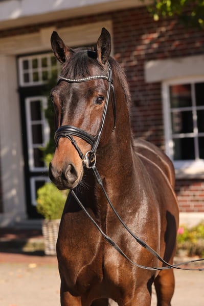 Zum Verkauf steht ein vielversprechendes Nachwuchspferd für den Dressursport. Dieser bildhübsche 4-jährige Wallach von For Dance x Jazz ist auf der Suche nach einem neuen und fördernden Zuhause. Er überzeugt nicht nur mit seinem charmanten Auftreten, sondern auch mit seiner Qualität in den Grundgangarten. Besonders hervorzuheben sind seine Leichtfüßigkeit und die Ausdrucksstärke in den Bewegungen. Er ist aktuell auf solidem Dressurpferde-A-Niveau ausgebildet (noch nicht auf dem Turnier vorgestellt) und zeigt dabei viel Potenzial für den weiteren Weg in höhere Klassen. Durch seine gute Rittigkeit eignet er sich ideal für ambitionierte Reiter, die ein Nachwuchspferd mit Perspektive suchen.