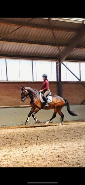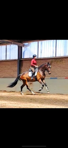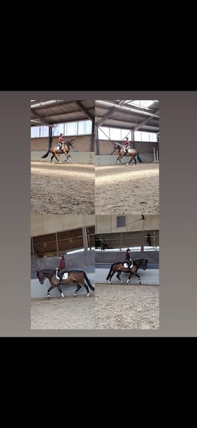 Für diejenigen, die ein feines, vielseitiges Sportpferd suchen! Semiramis ist ein 4-jähriger Wallach von Stargos VDL x Perfectum. Er misst etwa 1,70 m, beherrscht eine gute dressurmäßige Basis und hat auch schon einige Sprünge unter dem Sattel gemacht. Das nimmt er sehr gut auf! Er geht auch regelmäßig ins Gelände, sowohl alleine als auch mit anderen Pferden. Es ist ein talentiertes Pferd, das sehr lernbegierig ist, Dinge schnell aufnimmt und sowohl im Umgang als auch unter dem Sattel sehr gelassen ist. Er wurde im letzten Jahr klinisch und röntgenologisch vollständig ohne Beanstandungen genehmigt. Er war immer regelmäßig beim Schmied und Zahnarzt, auch sind alle seine Impfungen in Ordnung! Semiramis würde am besten zu einem ehrgeizigen Reiter mit etwas Erfahrung mit jungen Pferden passen, angesichts seines Alters! Ein Platz, wo er neben einer schönen Ausbildung auch Pferd sein darf, hat Vorrang! Bei ernsthaftem Interesse bitte per WhatsApp oder Telefon kontaktieren, Videos sind auf Anfrage verfügbar!