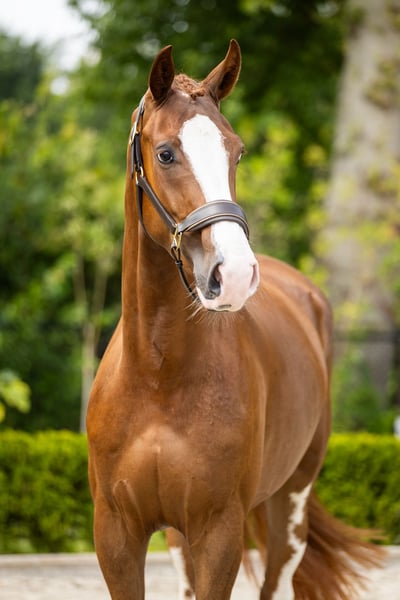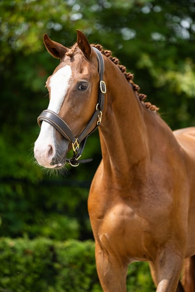 Three-year-old dark chestnut gelding, well-behaved and easy to handle. Ready to start work. Excellent behavior with the farrier! Fully inspected, including neck and back, with no remarks. 100% sound!
