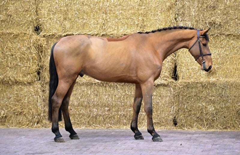 Dieses lernwillige Nachwuchsspringpferd, zeigt bei seinen ersten Sprüngen eine super Einstellung, nicht kukig und immer einen schönen Zug zum Sprung. Er will am Sprung immer Vorsichtig sein und man fühlt genügend Vermögen für höhere Aufgaben. Ist brav im Umgang und beim Reiten ( auch Gelände). Gute Röntgenbilder und klinischer Tüv vorhanden.