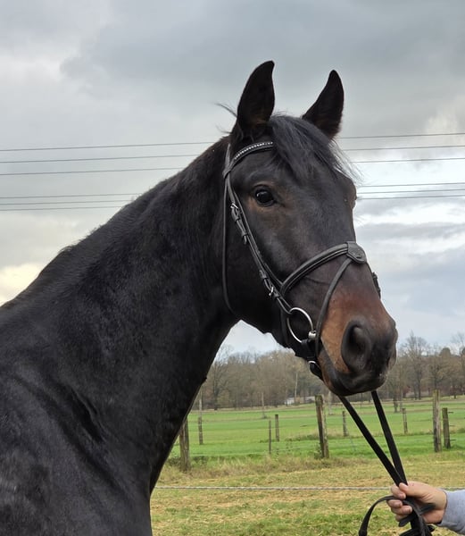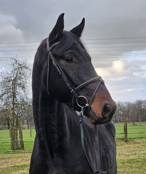 Stich is a loyal, currently 17.5 hh KWPN gelding. He descends from renowned bloodlines including Jameson RS2, Blue Horse Zack, Atilinda M/Waleska, Weltruhm, Dawina, and Weltmeyer. His pedigree is world-class; normally, such a horse would be quite expensive. :-) Stich truly possesses a lot of quality. Now for the caveats!!! Stich has two minor issues. Firstly, he suffers from shivering, and secondly, he has a slight laryngeal tie-back. However, he copes well with both conditions. We believe that a horse with such qualities deserves a chance. Stich has now been under saddle ten times. He has been gentle and cooperative with everything so far. He is simply a big, gentle giant. He is already working in all three gaits under saddle, with videos available. We see him as an excellent leisure horse, although we also know some horses with shivering competing successfully at higher levels. If you are interested in Stich, we look forward to your call at: 0177/2721831.