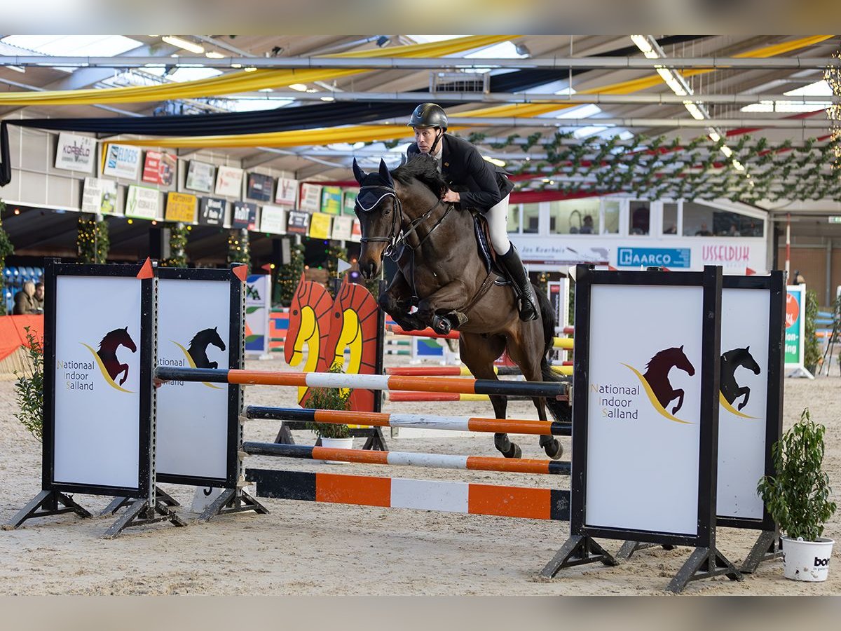 For sale: Beautiful dark bay 5-year-old gelding by Cantona TN. We bred the horse ourselves. His mother, Zamalia, successfully competed at 1.35m, as did his granddam, Idessa. The horse has plenty of bloodlines and currently jumps at 1.10m. Video attached. At age 3, radiographs were taken with no remarks for sport. There is a tiny chip on the front of the fetlock (clinically irrelevant, purely cosmetic). Asking price: €14,500 including VAT (€12,000 excluding). For further questions, please contact us by phone.