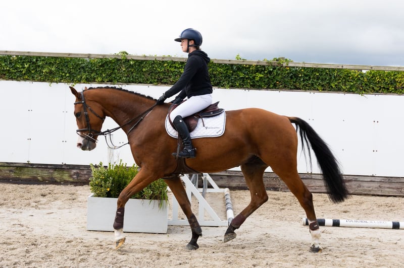 The five-year-old Pino comes directly from the breeder. This tall gelding was only three months saddle-trained on the video day but impressed with his power and trainability. He will also be suitable for amateur riders. His sire, Johnnie Walker VDL, is eleven years old and made his 1.55m Grand Prix debut this year with Alexander McLean (GBR). His dam, Kimberly (Dantos HBC x Ultimo x Pilot), is a granddaughter of the 1.50m show jumping mare Ilea, who is also known as the half-sister of the 1.60m Grand Prix horse Traxdata Tip Toe with James Fisher (GBR).