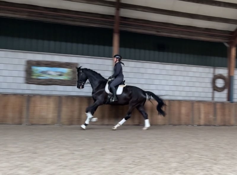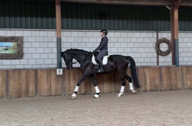 Joli et très gentil cheval de 6 ans ! KWPN par Livius, 1,77 m Cheval agréable avec la bonne attitude. S’adapte facilement ! Convient à de nombreux cavaliers. Ne regarde rien, ni en carrière ni en extérieur. Actuellement en entraînement au niveau L, il bénéficie du temps nécessaire pour devenir plus fort et plus rempli. Cheval très fiable, peu sensible. Peut également se déplacer agréablement et possède un bon potentiel. À l’écurie, il est joueur et recherche volontiers la compagnie des humains. Très calme au pansage, au lavage et en main. Monte aussi facilement dans le van. Correct, en bonne santé, sans défauts de box. Oud Gastel, NL ☎️ 06-10197456